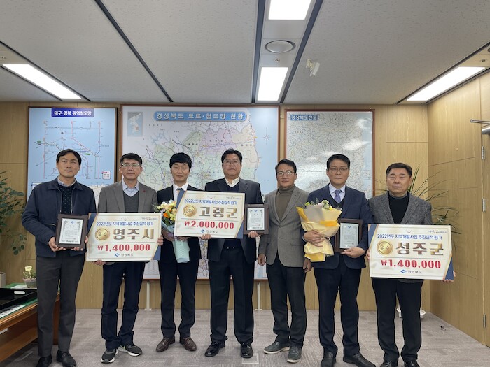 [세계로컬타임즈 이장학 기자] 경상북도는 26일 민간자본 투자유치 실적, 기반시설사업 추진 등 지역개발사업 업무 전반에 걸쳐 실시한 ‘2022년도 지역개발사업 추진실적 평가’ 결과 최우수기관에 고령군, 우수기관에 영주시‧성주군을 선정해 시상했다고 밝혔다.