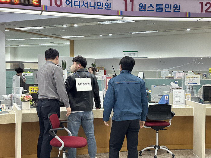 민원실 직원들은 통합민원과장을 총괄로 비상대응반을 편성, 특이민원 대응 메뉴얼에 따라 ▲민원인 진정 유도 ▲사전 고지 후 녹음·촬영 실시 ▲비상벨 호출 ▲피해공무원 보호 및 방문 민원인 대피 ▲경찰 인계 절차 등을 진행하며 실제 상황처럼 훈련에 임했다.