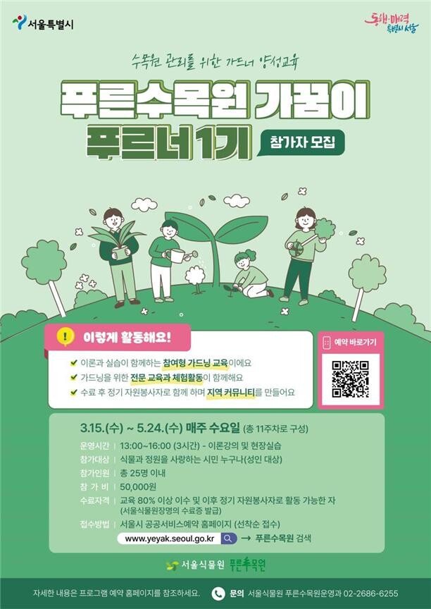서울특별시 등록 제1호 공립수목원인 푸른수목원에 대한 시민 관심 향상과 자원봉사활동의 전문성 강화를 위해 추진되며, 수목원을 사랑하는 시민들과 함께 배우고 함께 가꾸며 자연과 함께하는 정원문화를 만들어갈 예정이다.