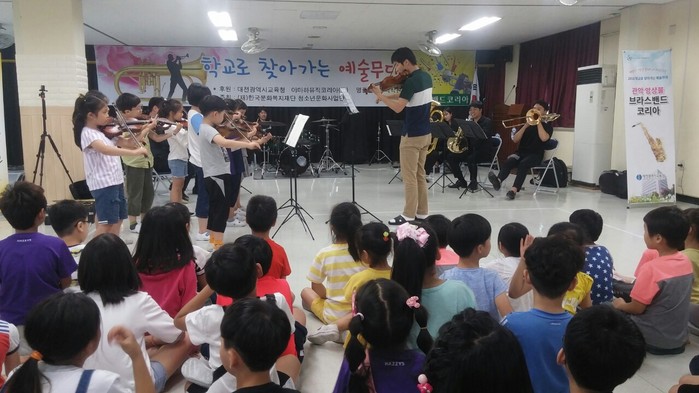 대전교육청은 지난 4월 뮤즈, 브라스밴드코리아, 이정애 무용단, 에듀비젼, 한남대 예술문화대학협동조합, 대전시립합창단 등 6개 기관과 업무 협약을 맺고 4월 대전 매봉중을 시작으로 학교로 찾아가는 예술무대가 펼쳐지고 있다.