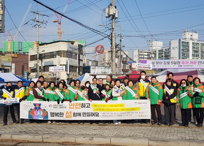 이번 캠페인에서의 주요 홍보 내용은 ▲안전한 설맞이를 위한 안전수칙, ▲설연휴기간 응급의료 및 공공심야약국 운영 정보, ▲가정 내 자율안전점검 사항 및 생활 주변 안전 위험요소를 신고할 수 있는 ‘안전신문고’ 앱 이용, ▲ 해빙기 안전수칙 및 주민점검신청제 활용방법 등으로 안전을 위한 다양하고 유용한 정보들을 시민들에게 전달했다.