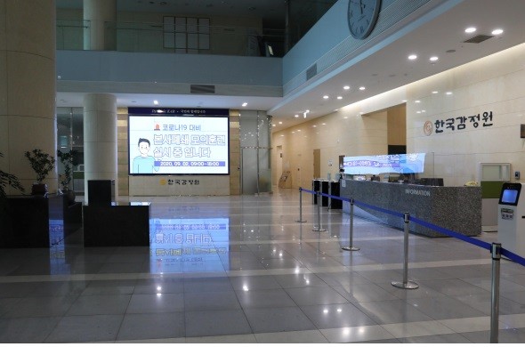 | ▲ 셧다운 모의훈련으로 한국감정원 본사 1층 로비가 텅비어 있다. (사진=한국감정원 제공) |