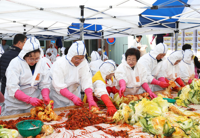 당진시 순성면 새마을지도자협의회.부녀회(회장 황인동, 부녀회장 김재숙)도 13일과 14일 이틀에 걸쳐 배추김치 500포기를 담갔다. 이들이 담근 김치는 15일 고추장 80박스와 함께 순성면 지역 어려운 이웃들에게 전달될 예정이다.