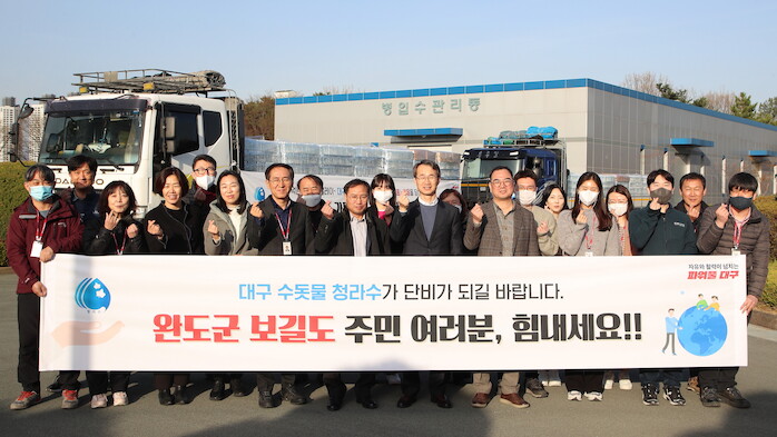 [세계로컬타임즈 이장학 기자] 대구시가 최근 심각한 가뭄으로 식수난을 겪고 있는 완도군 보길도에 대구 수돗물 ‘청라수’ 5만 병(총 17,500L)을 지원한다고 14일 밝혔다.