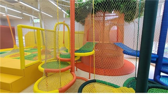 키즈카페 내부는 ▴정적인 놀이공간인 ‘오브제 놀이터’ ▴동적인 놀이공간인 ‘그물 놀이터’ ▴책과 관련된 놀이 프로그램과 보드게임을 할 수 있는 ‘책 놀이터’ 등으로 구성된다.