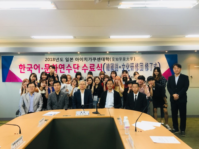 올해로 8회째를 맞이하는 이번 연수는 9일부터 22일까지 아이치가쿠센대학(愛知学泉大学) 오카자키 캠퍼스의 생활디자인과와 도요타 캠퍼스의 현대매니지먼트과에서 총 16명의 학생들이 참가해 한국어 및 한국문화에 대한 교육을 받았다.