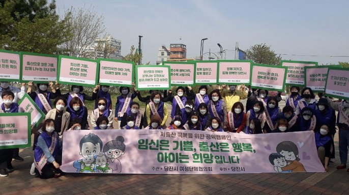 [세계로컬타임즈 홍윤표 조사위원] 당진시여성단체협의회는 지난 21일 회원들 50명과 함께 수변공원 일원에서 저출산 극복을 위한 공익활동 캠페인을 진행했다.