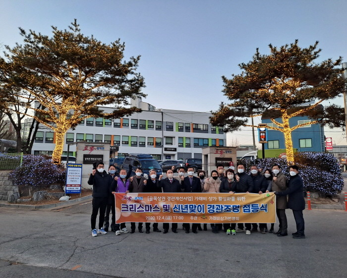 | ▲ 양주시는 최근 광적면 가래비상가번영회에서 광적면 행정복지센터 입구 수목의 야간조명을 비롯해 번영회 회원 67개소 개별 점포에 크리스마스 조명을 설치, 점등식을 개최했다. (사진=양주시 제공) |