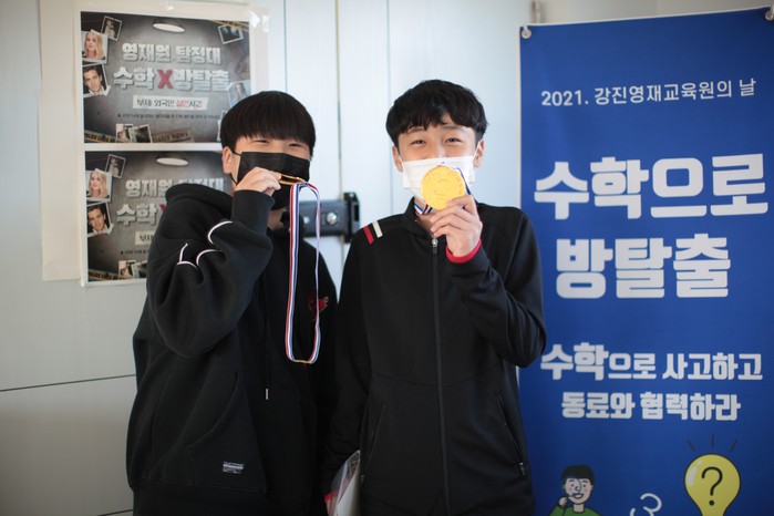 강진동초 김재홍 학생은 “코로나 이후로 다양한 행사가 모두 취소되어 아쉬웠는데 오늘 재밌는 체험을 많이 할 수 있어 정말 좋았다. 특히 수학 보드게임과 수학 방탈출에서 수학을 이용해서 기억에 남아 수학이 이렇게 즐거울 수도 있구나 하는 생각이 들었다”고 소감을 말했다.
