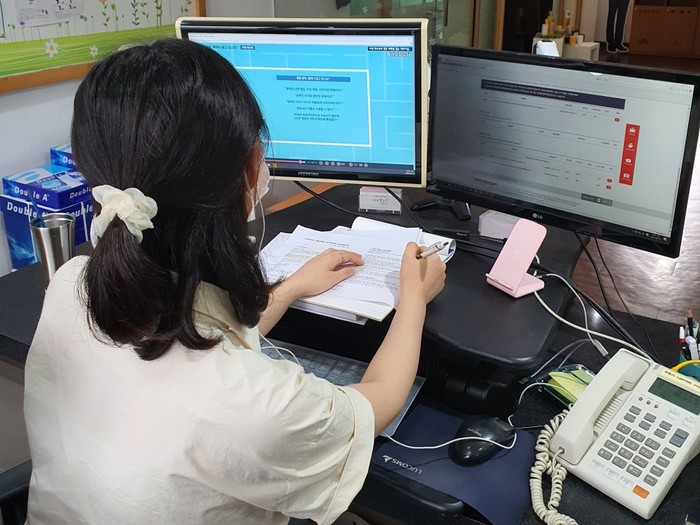 | ▲ 위(Wee)센터에서 온라인으로 전문상담사가 전문성 향상 직무연수를 진행하고 있다. (사진=인천시교육청 제공) |