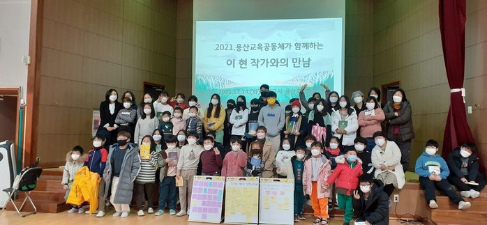 본교 학생, 교직원, 학부모로 구성된 용산 교육 공동체는 온 책읽기 교육과정과 학부모 대상의 평생교육 프로그램을 연계해 작가와의 만남 이전에 ‘푸른사자 와니니’, ’로봇의 별’, ‘7개의 화살’ 등 이현 작가의 책을 구입하여 학교와 가정에서 온 책읽기 독서활동을 꾸준히 전개해왔다.