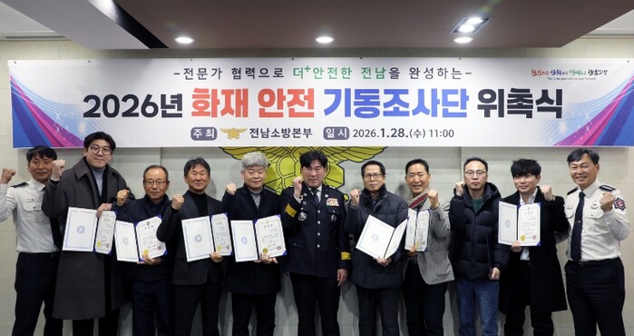 이를 위해 전남소방은 28일 오전 본부에서 위촉식을 갖고 교수, 건축사, 소방기술사, 관리사 등 각 분야에서 최고의 전문성을 갖춘 민간 위원 8명을 영입했다. 이들은 향후 2년간 소방공무원 12명과 함께 총 20명 규모의 ‘민·관 합동 안전 드림팀’으로 활동하게 된다.