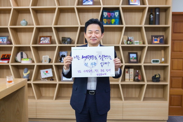 | ▲ 7월2일부터 제주영화문화예술센터 일대서 2016 양성평등주간 기념행사가 열린다. 사진은 원희룡 제주지사가 '나는 성평등을 실천하는 원희룡입니다'라고 쓴 카드를 들고 기념촬영한 모습. <사진제공=제주도청> |