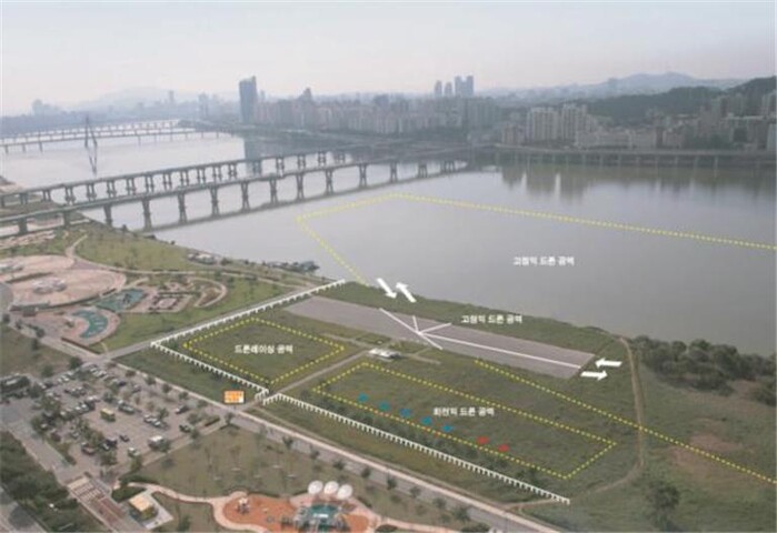 한편, ‘한강 드론장(강동구 천호동 351-1일대)’은 약 27,000㎡의 규모로 과학공원 모형비행장으로 운영되던 공간을 재조성해 2016년 6월 개장했다.