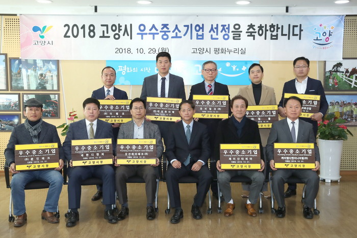 [세계로컬타임즈 장관섭 기자] 고양시는 ‘2018년도 고양시 우수중소기업’으로 선정된 10개 기업 대표들에게 인증서와 현판을 수여했다.