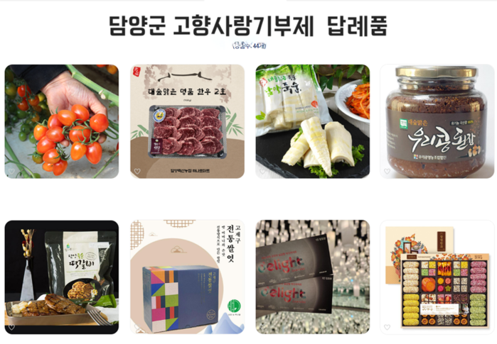 담양군이 제공하는 답례품은 쌀, 한우, 떡갈비 등 14개 품목 18개 업체의 다양하고 특색 있는 지역 특산품과 담양사랑 상품권 등을 제공하고 있다.