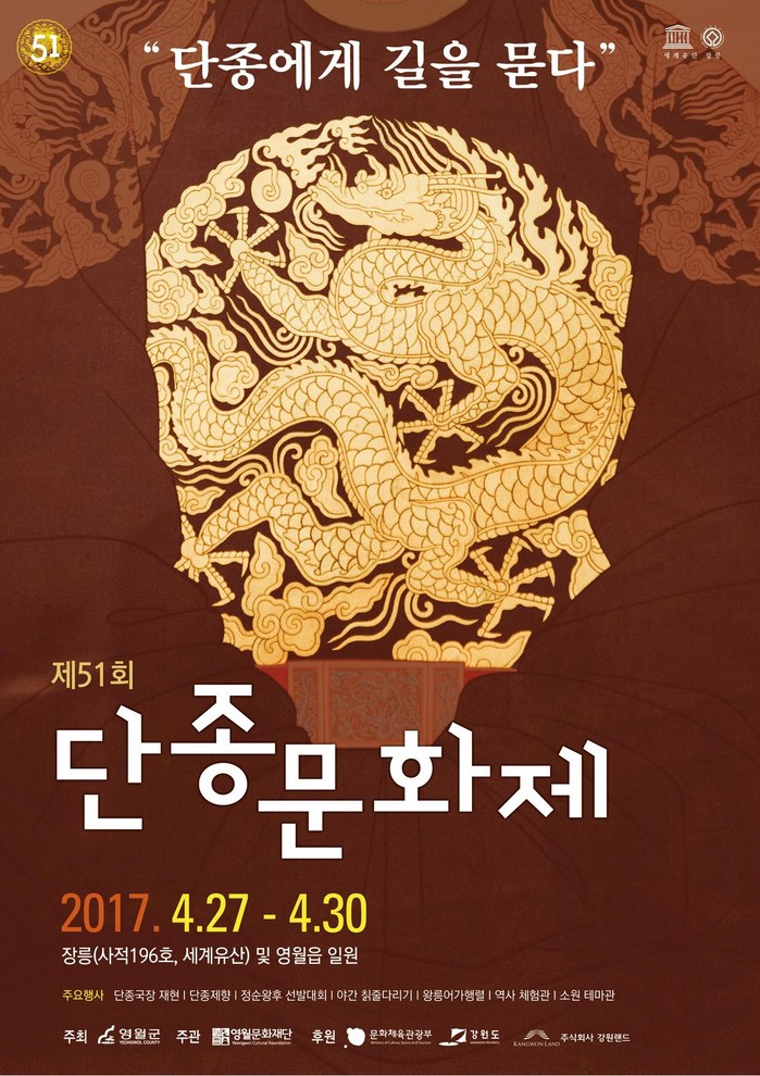 [세계로컬신문 이평래 기자] 강원도 영월군이 주최하고 재단법인영월문화재단이 주관하는 2017년 제51회 단종문화제가 '단종에게 길을 묻다'라는 주제로 오는 27일부터 30일까지 4일간 열린다.