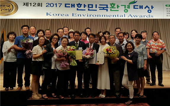 | ▲ 26일 김광수 서울시의원이 2017 대한민국 환경대상 환경봉사상을 받고 기념촬영을 하고 있다. <사진제공=서울시의회> |