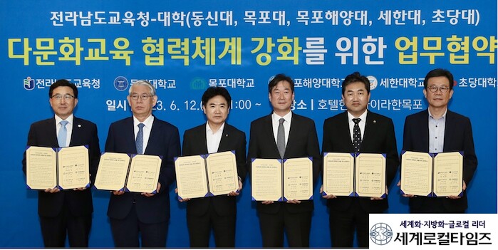 [세계로컬타임즈 김명진 기자] 전라남도교육청이 12일 현대호텔바이라한목포에서 전남 도내 5개 대학(동신대·목포대·목포해양대·세한대·초당대)과 지역소멸위기를 극복하고 상생의 길을 찾기 위해 업무협약을 체결했다고 밝혔다.