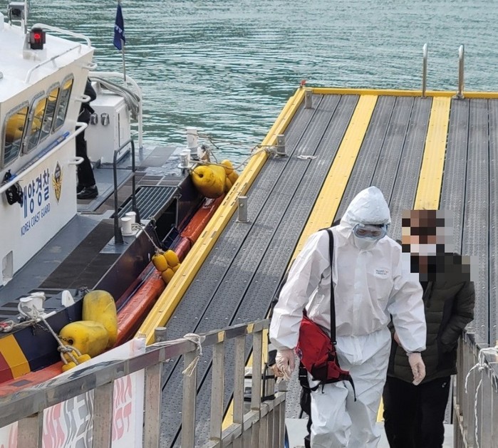 해경은 코로나19 방역지침을 준수한 가운데 조도 창유항에서 A씨와 보호자를 탑승시키고 진도군 서망항으로 신속하게 이송했다.