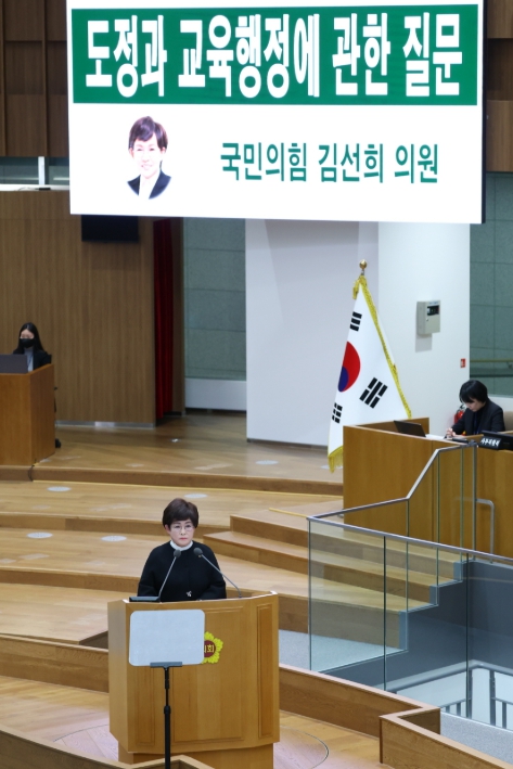 김선희 의원은 도정 질문 첫번째로 김동연 지사에게 용인반도체클러스터의 차질 없는 진행에 대해 경기도 차원의 확고하고 변함없는 정책 기조를 재확인하면서 경기도의 흔들림 없는 입장을 이끌어냈다.