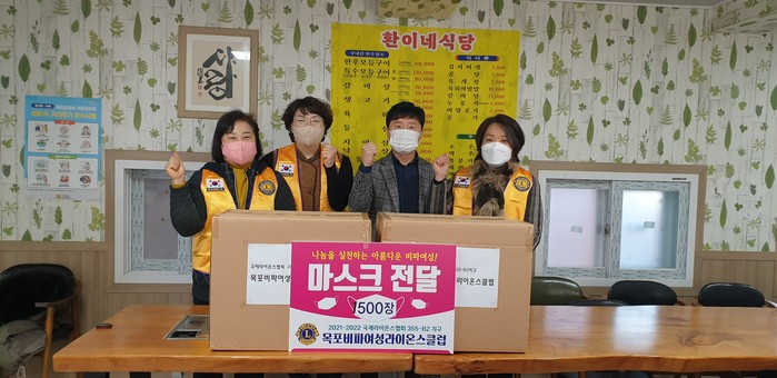 국제라이온스협회 355-B2지구 목포비파여성라이온스클럽(회장 김미정)도 대성동 복지사각지대에 전달해달라며 마스크 1,500매(120만원 상당)를 기탁했다.