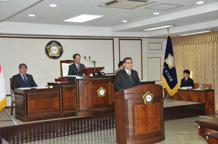 | ▲문제광 특위위원장이 대전 중구의회 본회의장에서 제안 설명하고 있는 모습. |