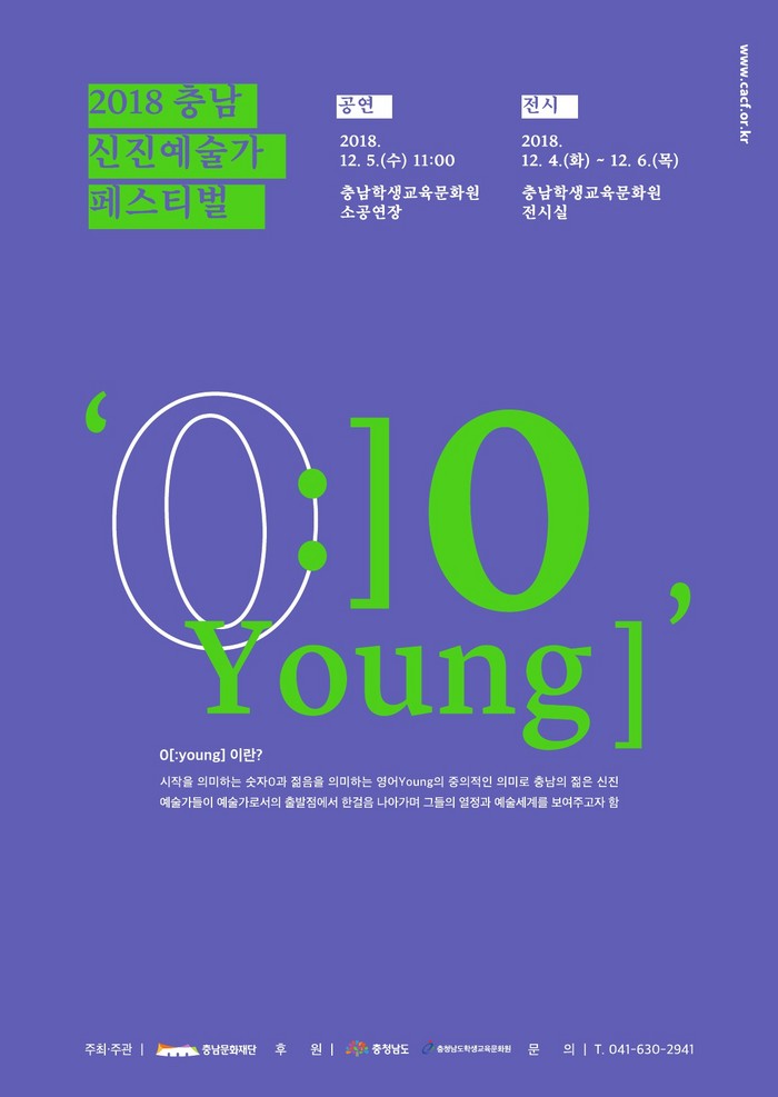 [세계로컬타임즈 홍윤표 조사위원] 충남문화재단은 신진예술가들의 열정을 담은 ‘2018 충남신진예술가 페스티벌’을 개최해 신선한 작품을 통해 관객과 소통하고 교류할 수 있는 가교의 장이 펼쳐질 것으로 기대되고 있다.