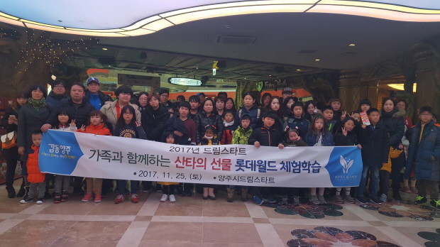 [세계로컬신문 고성철 기자] 경기도 양주시 드림스타트는 지난 25일 대상가족 80명을 선정해 ‘가족과 함께하는 산타의 선물 롯데월드 문화체험’ 프로그램을 진행했다.