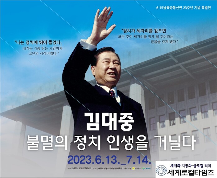 6·15 남북정상회담 23주년을 기념하는 이번 전시는 ‘김대중 불멸의 정치 인생을 거닐다’는 주제로 오는 13일부터 7월 14일까지 김대중노벨평화상 기념관 기획전시실 1층에서 열린다.