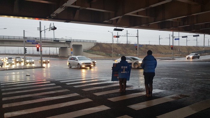 | ▲ 문정복 예비후보가 사거리에서 주민들에게 인사하고 있다. |