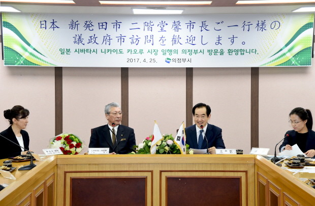 [세계로컬신문 고성철 기자] 안병용 경기도 의정부시장은 25일 의정부시를 방문한 자매도시인 일본 니카타현 시바다시 니카이도 카오루(二階堂 馨)시장과 관광진흥과장을 비롯한 대표단을 접견했다.