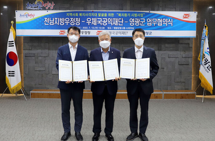 14일 영광군에 따르면 지난 13일 우정사업본부 전남지방우정청과 우체국 공익재단과 함께 ‘복지등기’시범사업 추진을 위한 업무협약을 체결하였다.