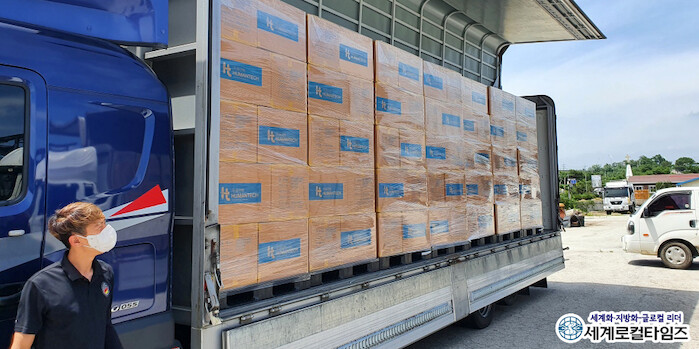 [세계로컬타임즈 조주연 기자] 휴먼텍이 직접 생산한 보건용 덴탈마스크 134만 4000장을 전북 부안군에 기탁했다. 5200만 원 상당이다.