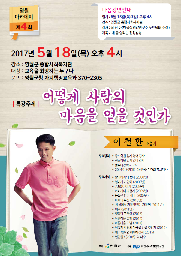 | ▲ 이철환 소설가 영월아카데미 강연 포스터.<사진제공=영월군청> |