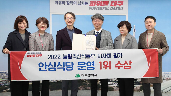[세계로컬타임즈 이장학 기자] 대구시는 농림축산식품부가 주관한 ‘2022년 하반기 안심식당 운영 우수 지자체 평가’에서 전국 1위 기관으로 선정돼 장관상을 수상했다고 9일 밝혔다.