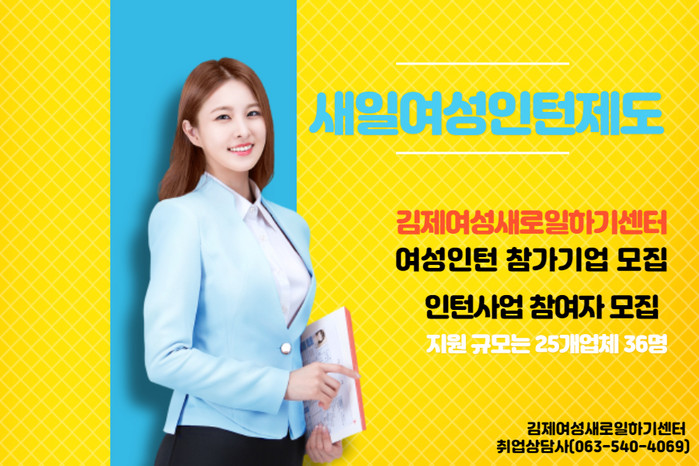 5일 김제시에 따르면 새일여성인턴제도는 여성 고용에 대한 편견을 해소하고 여성의 취업경쟁력 향상을 도모하기 위해 추진하는 사업으로 지원 규모 25개업체·36명이 채워지면 마감된다.