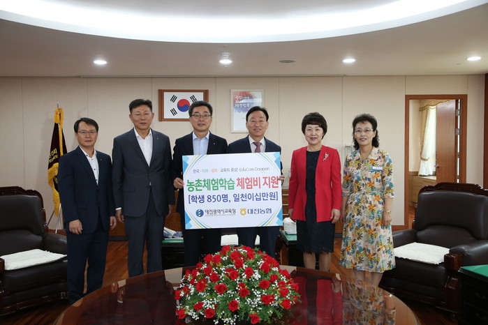 [세계로컬신문 오영균 기자] 대전시교육청(교육감 설동호)은 21일 오전 시교육청 접견실에서 농협중앙회 대전지역본부(본부장 전용석)로부터 초등학생 및 중학생들의 농촌체험학습을 지원하기 위한 농촌체험학습비를 전달받았다.