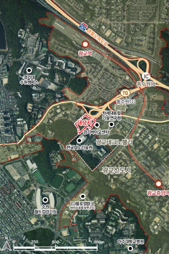 이번 개발 대상지는 영동고속도로와 용인서울고속도로 인접, 신분당선 광교중앙역 1km 내 위치한 우수한 교통 접근성을 갖추고 있다. 특히, 바이오 혁신 기반을 갖춘 광교 바이오 클러스터 내에 자리 잡고 있으며, 주변에는 경기도 바이오 광역클러스터를 구성하는 200여 개 기업과 공공·민간 연구기관들이 밀집해 있어 시너지가 기대된다.