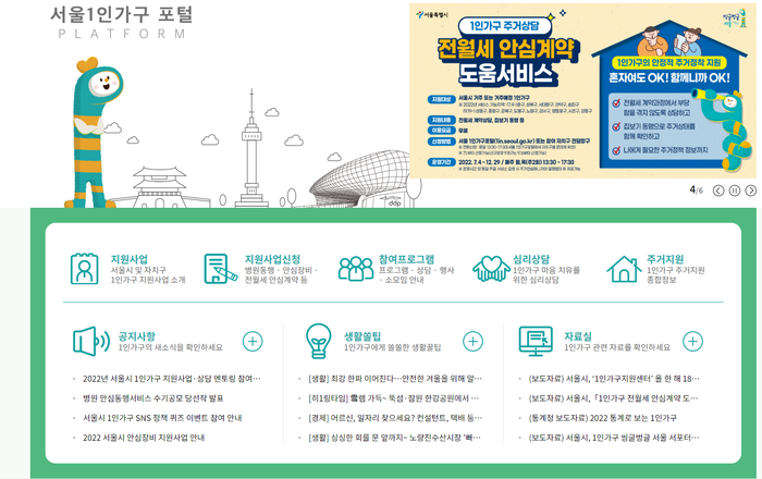 각 자치구 1인가구지원센터에서 진행되는 프로그램에 관한 자세한 내용은 1인가구 누리집 또는 1인가구 누리소통망을 통해 확인할 수 있다.