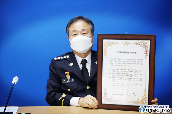 [세계로컬타임즈 조주연 기자] 전북 부안해양경찰서가 “임인년 새해 첫 회의에서 2022년 반부패 청렴경영 선언식을 개최했다”고 밝혔다.