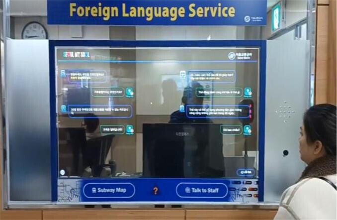 [세계로컬타임즈 이효진 기자] 외국인 관광객과 지하철역 직원이 투명한 스크린을 가운데 두고 자국어로 대화를 하면 상대방의 언어로 자동 통역돼 스크린에 표출되는 AI통역 시스템이 서울교통공사가 운영하는 11개 지하철역에 확대 설치된다.