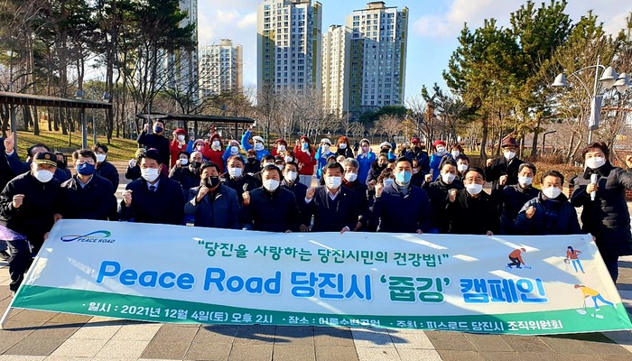 [세계로컬타임즈 홍윤표 조사위원] 당진시 피스로드 조직위원회는 4일 오후 당진 어름수변공원에서 당진시의회 최창용의장과 서영훈, 김명회, 윤명수 시의원, 김철수 상임이사와 세계일보 조사위원을 비롯해 회원과 당진시민 80여명이 참석한 가운데 ‘당진시민을 사랑하는 당진시민의 건강법’이란 주제 아래 '피스로드 당진시 ‘줍깅’ 캠페인' 행사를 했다.