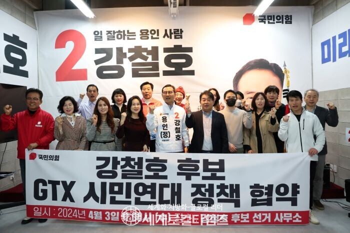 [세계로컬타임즈 이지안 기자] 3일, 국민의힘 용인(정) 강철호 후보는 용인시의 교통 현안에 대해 구체적인 로드맵을 구상하고 실현하기 위해 ‘GTX시민연대’와 정책 협약식을 가졌다.