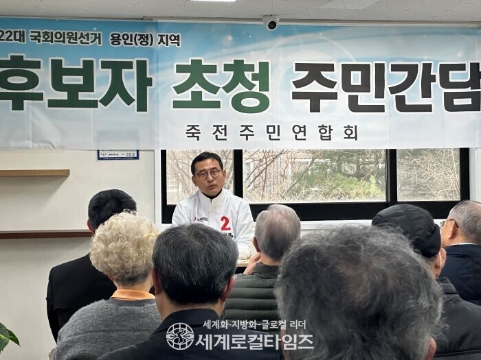 ▲지난달 30일, 죽전주민연합회 간담회 참석중 강철호 후보가 주민들의 질의에 답변하고 있다. (사진=이지안 기자) |