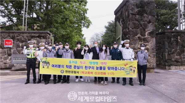 [세계로컬타임즈 신선호 기자]연천경찰서는 관내 고등학교를 대상으로 학교폭력 예방 캠페인을 진행했다.