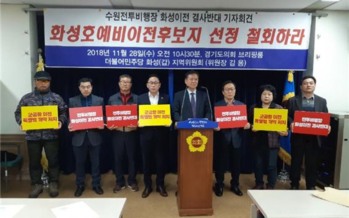 한편, 김 위원장은 기자회견을 마무리하며 “만일 국방부와 수원시가 이전철회에 대한 대화에 나서지 않으면 군공항이전 특별법 폐지를 위한 국가청원에 나설 계획이다. 이전 결정 자체가 박근혜 전 대통령 탄핵기간 중에 졸속으로 처리된 일이기에 이제 원점에서 다시 검토하는 것이 마땅한 일이다”고 밝혔다.