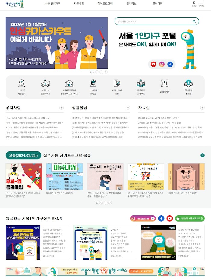 서울시가 156만 1인가구 삶의 질 향상을 위해 ▴생활안심 ▴고립안심 ▴안전안심의 3대 공적 지원 맞춤 정책을 마련한다.