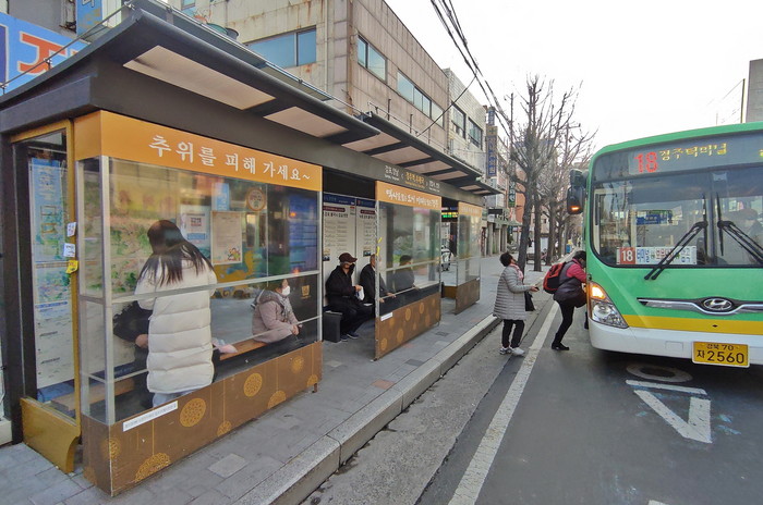 | ▲ 경주시 시내버스 정류장에 방한시설이 설치돼 있다. [사진=경주시청] |