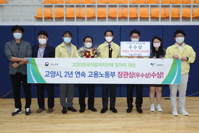 고양시는 전날 정부고양합동청사에서 고용노동부가 주관하는 ‘2020 전국 지방자치단체 일자리대상’의 공시제(지역일자리 목표 공시제) 부문에서 우수상(장관상)을 수상했다고 6일 밝혔다. 이에 따라 고양시는 경기도 내 유일하게 2년 연속 우수상을 수상하게 됐다.